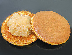 みぞれまじりの雪のような、「ホワイトつぶあん(白つぶあん)」入りのどら焼きです。