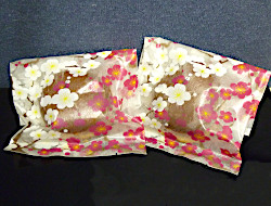 紅白の梅の花いっぱいのパッケージのどら焼きです。