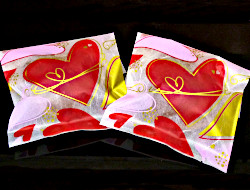 かわいいハート柄のパッケージに入った、ハートの形のどら焼きです。